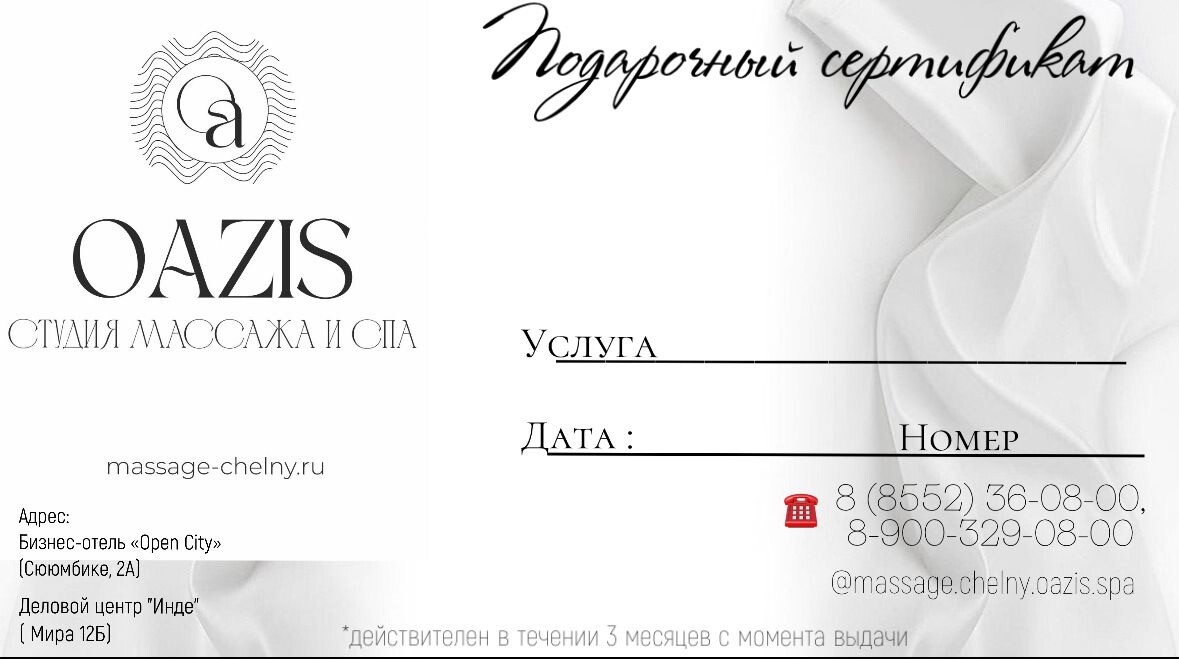 сертификат на сеанс массажа в салоне «OAZIS»